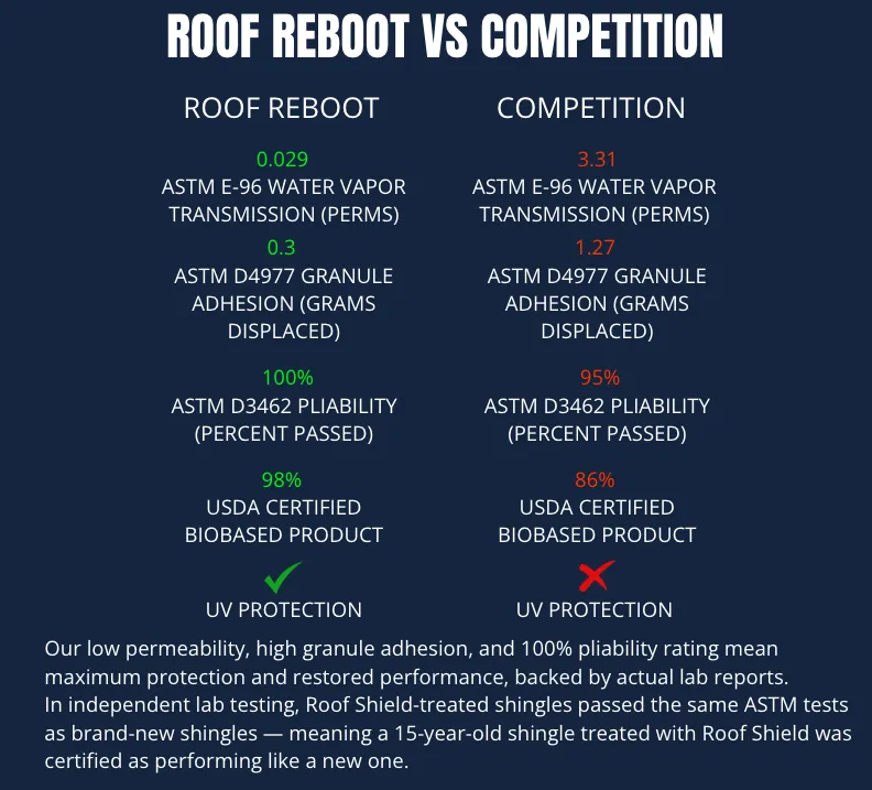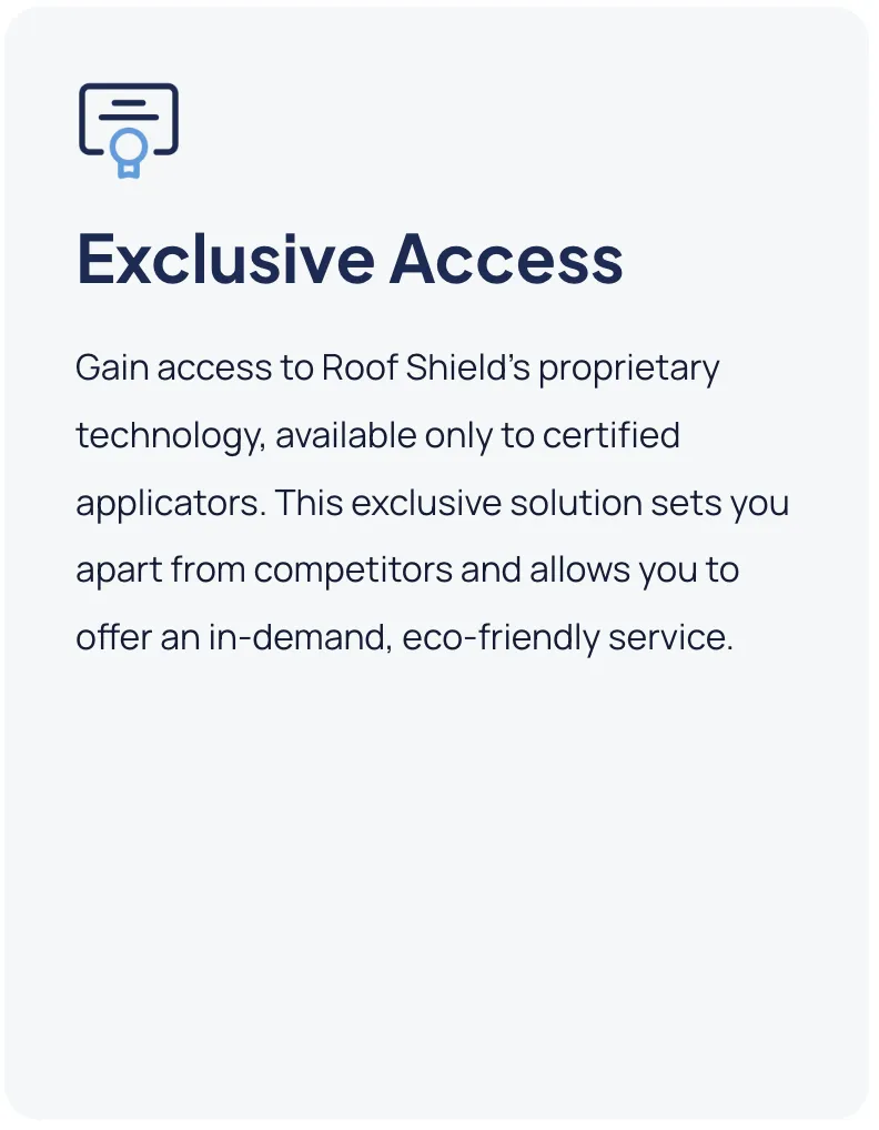 Roof Shield is the only product on the market that has passed all ASTM tests for a new roof after application. It’s also made in the USA, comes with unparalleled support, and has a unique online training.